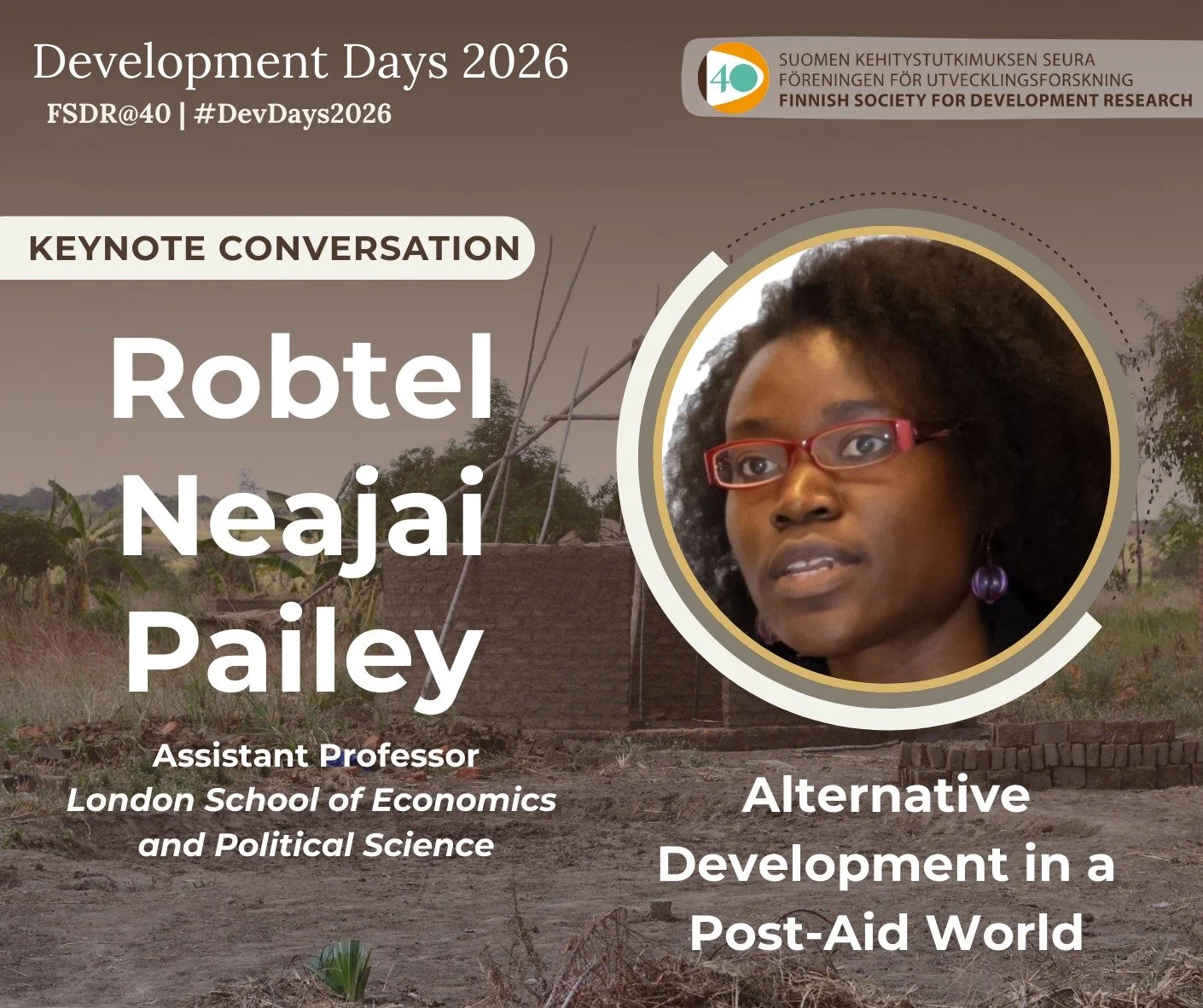 Excited to discuss ‘Alternative Development in a Post-Aid World’ as #keynote #speaker tomorrow during the Finnish Society of Development Research’s #DevelopmentDays 2026 Annual Int’l Conference in #Helsinki, #Finland: www.robtelneajaipailey.com/events/2026/...